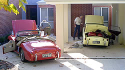 Left to Right: Ian & Kate Cuss (TR2), Tony & Lesley Xerri (TR3a), and Ray Mullins