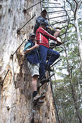 The boys climbing The Diamond Tree Fire spotting lookout. |