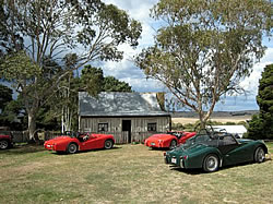 Wednesday Warriors overnite run 25/ 26th March 2009 Neil Tribe submitted this report: "Wed Warriors 25th/26th March was a great success. Road from Hartley to Taralga superb TR territory. Lots of open corners and undulating country. Beautiful views, light traffic - highly recommended. Main meeting point was the tearooms at Hartley where Sydney mobsters, Mountain Men (Pikey and Otto) and Western Cowboys (Alan Mitchell and Olsons) congregated. Lunch at Taralga was delicious - home made sandwiches and soup with real tablecloths all set out in olden day style in Masonic Hall. Free tour and commentary of the museum next door. All courtesy of the Taralga Historical Society. Brohie and John Blake met us there in the Vanguard. Then on to Louis and Jessie Maroya's place for afternoon tea. Jessie and Louis had prepared homemade nibbles and juices for the weary travellers. Had a tour of their car collection - Doretti, TR4 and Stag. Dinner in the bistro at the Astor Hotel, Goulburn. Lots of fun and laughter. Quiet but hot trip home Thursday." |