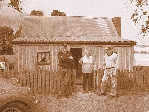 This photo was on the cottage wall. The old settler (Gary) is showing Merv & Marcie his cottage some 40 years ago (!!) |