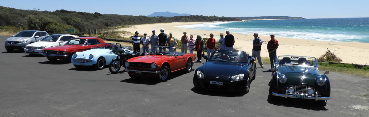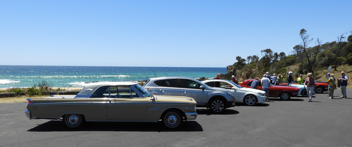 Sapphire Coast Chapter Christmas Party run - 27 November - photo of some of the cars at Cuttagee on the way to Bermagui