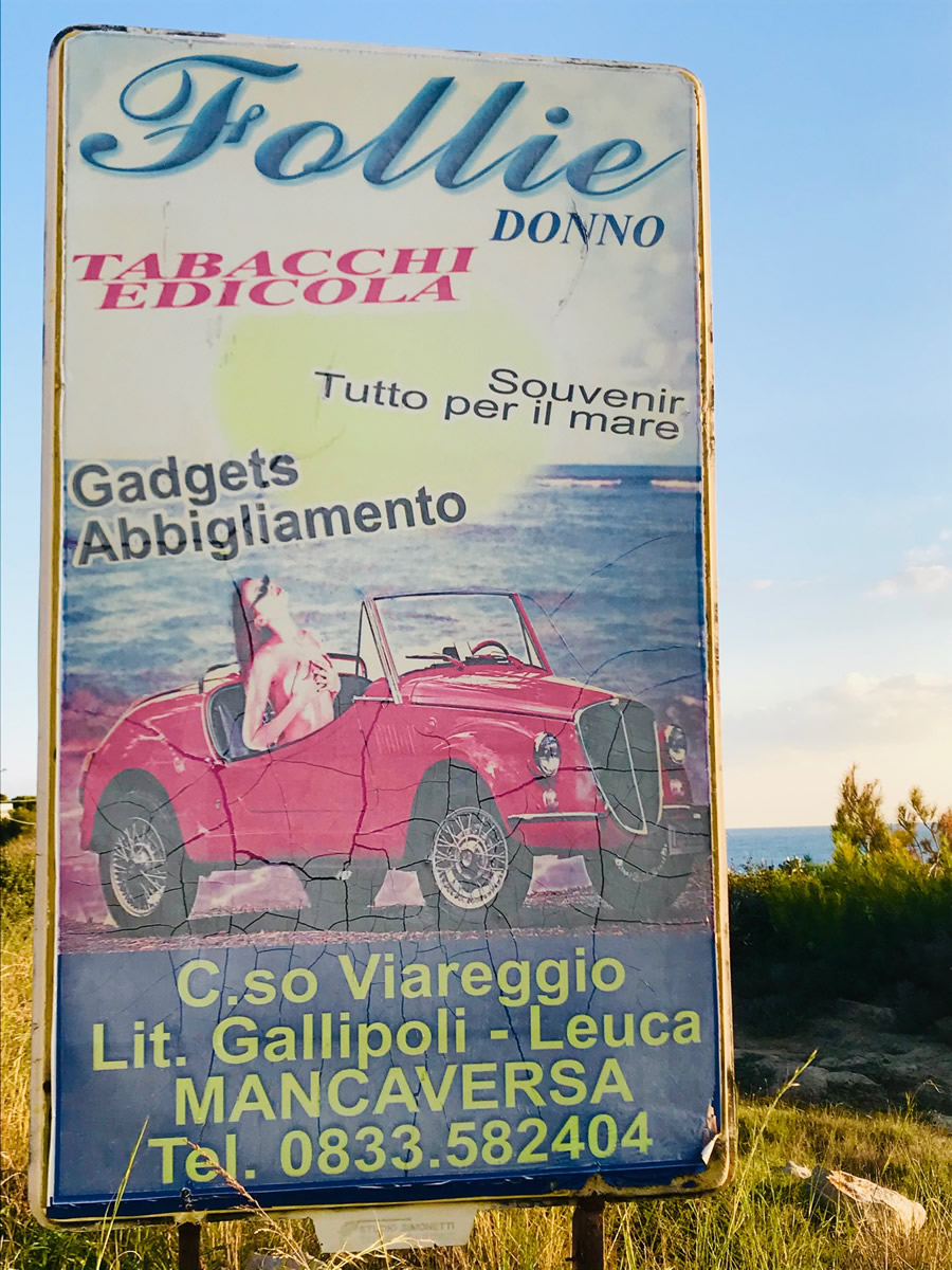 As we are coming to end of our time in Italy I thought an update on the classic cars we have seen would be in order. Apart from two R4s and one 70s Alpha Spyder the answer unfortunately is none. This is the closest we have got which is an aged advert for the local Tabach