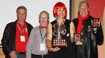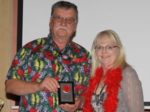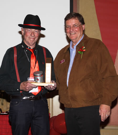 Moss Award for this years' Most Outstanding & Spectacular Stuffup is: Keith Brown and you can see that he is really delighted to receive it. Rumoured to involve a stationary TR, an open bonnet and a rapidly descending roller door! |