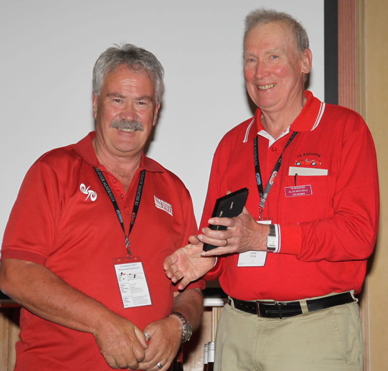 Three additional Life Members were inducted in 2017 - they were: David Pearce (TAS); Bruce Hoskins (NSW) & Tony Knowlson (VIC) All long serving members of the TR Register. David is on the far left and Bruce and Tony are holding their Certificates. |