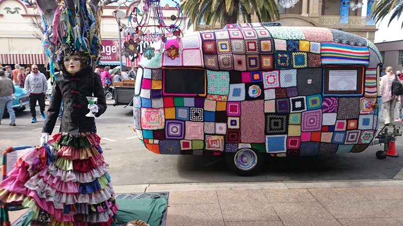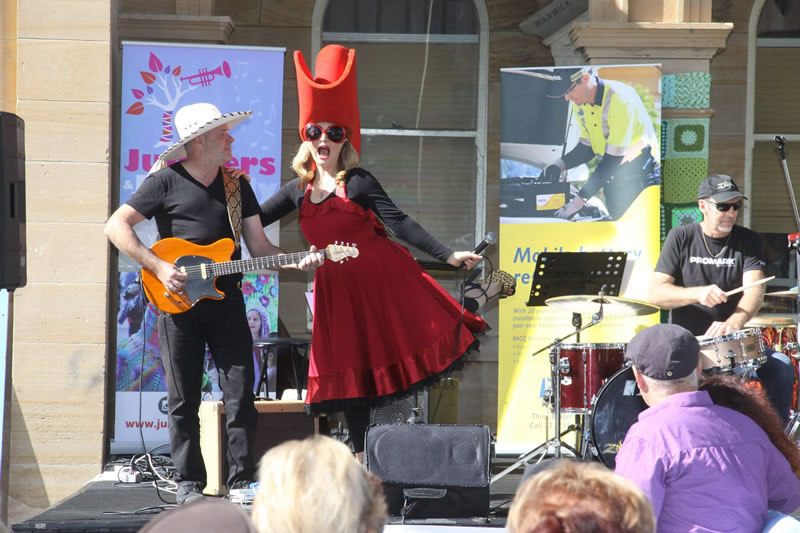 "Jumpers and Jazz" runs for 10 days every year and is combined with a RAC show and shine in the closed off centre of Warwick on Sunday with 150 vehicles including some nice triumphs but no side screens. |