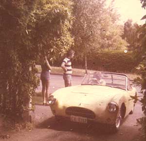 ![]() Car being collected from Phil's mother's place. Phil driving, myself (with hair back then) and sister in law |