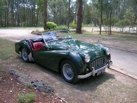 This TR was first registered 31/10/1956 in Singapore. It fell under Singapore’s Certificate of Entitlement legislation 1/6/1981 and was garaged & not driven from 1981 until 1991. It was purchased by an expat Australian and driven in Singapore until he was transferred to the UK in 1997 where it continued to be driven until 2001. The car participated in the AXA 2000 Classic, Brooklands to Millbrook. It was imported to Australia early 2001. No known modifications have been made except a supplementary electric fan. It currently has no overdrive as per original spec. Ian purchased the car on 25 th September 2004. After roadworthy work was done by the Healey factory it was re-registered with Vic plates (of October 1956 vintage). Ian plans to drive and enjoy the car and in 2005 decide what my restoration plan will be. |