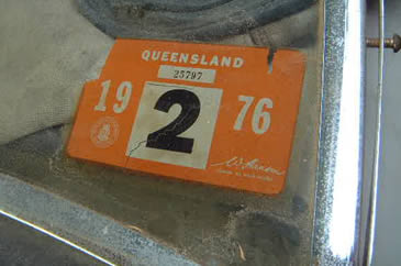 The car was purchased from John Wormald in 1982 as a non runner - last Registered QLD NPY155 Feb 1976 (see photo below). Manufactured: Tuesday 31st May 1960. TS76763 Engine Number: TS9104E (Block generously donated by Kevin Gulliver to replace Vanguard unit previously in the car). EB Number 73360: Mulliners No. 1096470 |