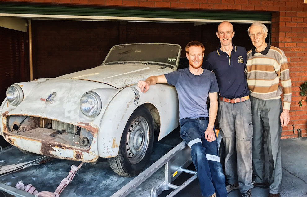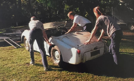 Me, Dad, Grandad and the TR3 on the trailer ready to move to my place