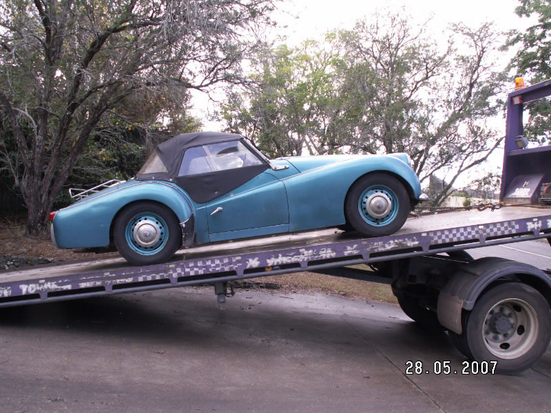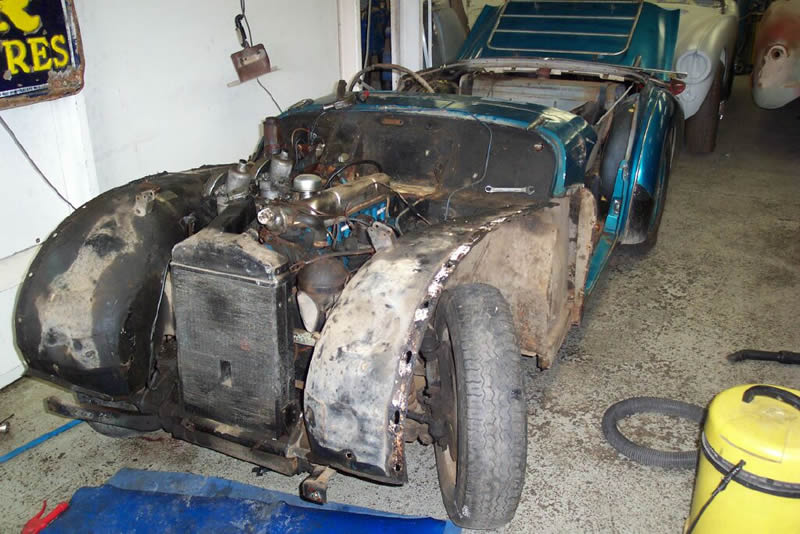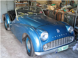 Hugh Burrill has supplied these photos and details of the restoration of his TR3A shown above. He says: TR3A Commission No: TS 81854, Engine No: TS 82048E, Body No: EB 79965 The British Motor Industry Heritage Trust Certified Copy of Factory Record says that the car was built in December 1960 as a RHD, Export vehicle with Spa White exterior, Red trim and White hood. It was despatched on 5th January 1961 to the destination of Standard Cars, Sydney , Australia . The car seems to have had an electric overdrive added (from a Vanguard it appears) since it arrived in Australia in 1961. In May 2007 I purchased the TR3A from an old school friend of mine (Ian) from Brisbane who originally bought the car back in August 1978 from the previous owner (Mr T. O'Beirne of Riverview , Queensland ). Ian bought the car when the two of us were at Queensland University together and so I have some good memories of driving it around Queensland over 30 years ago. Ian last had the car running in 1984 and it was up on blocks since then. In June 2007 I had the car transported down from Brisbane to Melbourne , directly to the Healey Factory in Ringwood where Ross McConnell is overseeing the full body-off restoration. The engine had seized up and so the engine and gearbox are also being reconditioned. After meeting up with a number of Victorian members of the TR Register at a couple of social functions and also attending the 2007 Concours in Port Macquarie, I decided to have a few modifications done including an alternator to replace the generator, a rack and pinion steering, gas front shock absorbers, electric water and fuel pumps, extractors and hi-torque starter, and other minor changes. In terms of colour, I couldn't bring myself to go with the original Spa White colour but I intend to go with an Old English White cream colour and burgundy red trim. I was hopeful that the car might have been ready for the 2008 Concours at Thredbo…. but, an annoying oil leak put paid to that (see page 2 )." |
