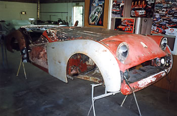 after working a number of years after hours I finally completed the bodywork ready for my spray painter. While the body was being painted the chassis was dismantled and as no repairs were required it was sandblasted and painted in 2 pack satin black.