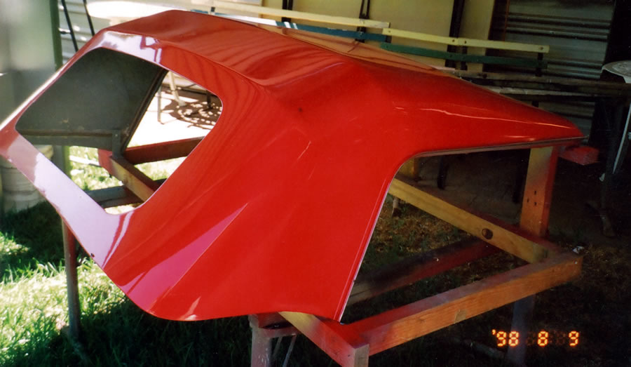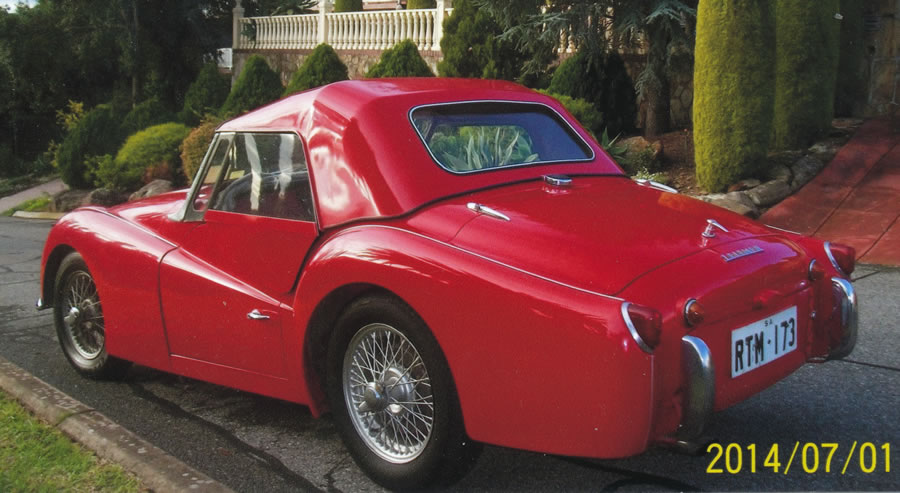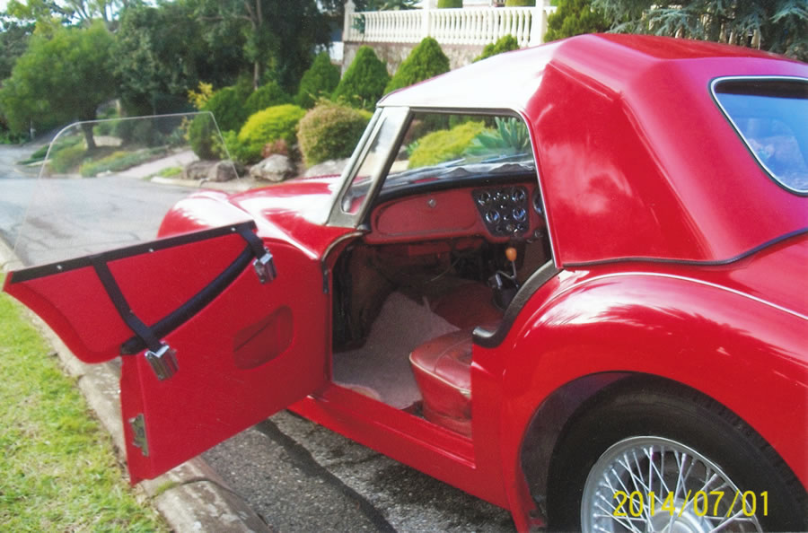 | The car was purchased in 2006 from a used car dealer in poor condition but original, complete and believed to have been stored since 1976. It had a rego label and IMVS sticker from Royal Adelaide hospital. All panels were stripped back to bare metal & resprayed red from a dark green over the original white. A metal hardtop was fabricated using the Francorchamps as an idea and completed with aluminium caravan gutter . |
