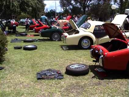 A close-up of the cars arranged as "TR" taken on the motorkana venue - the webmanager is ashamed to say: