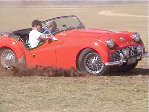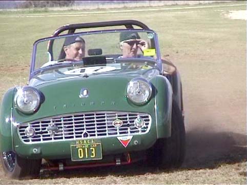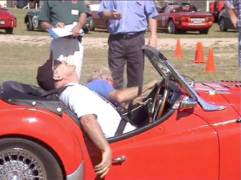 Bob Slender driving Geoff's car .... with the latter seemingly checking to see if the left front wheel is still on the car |