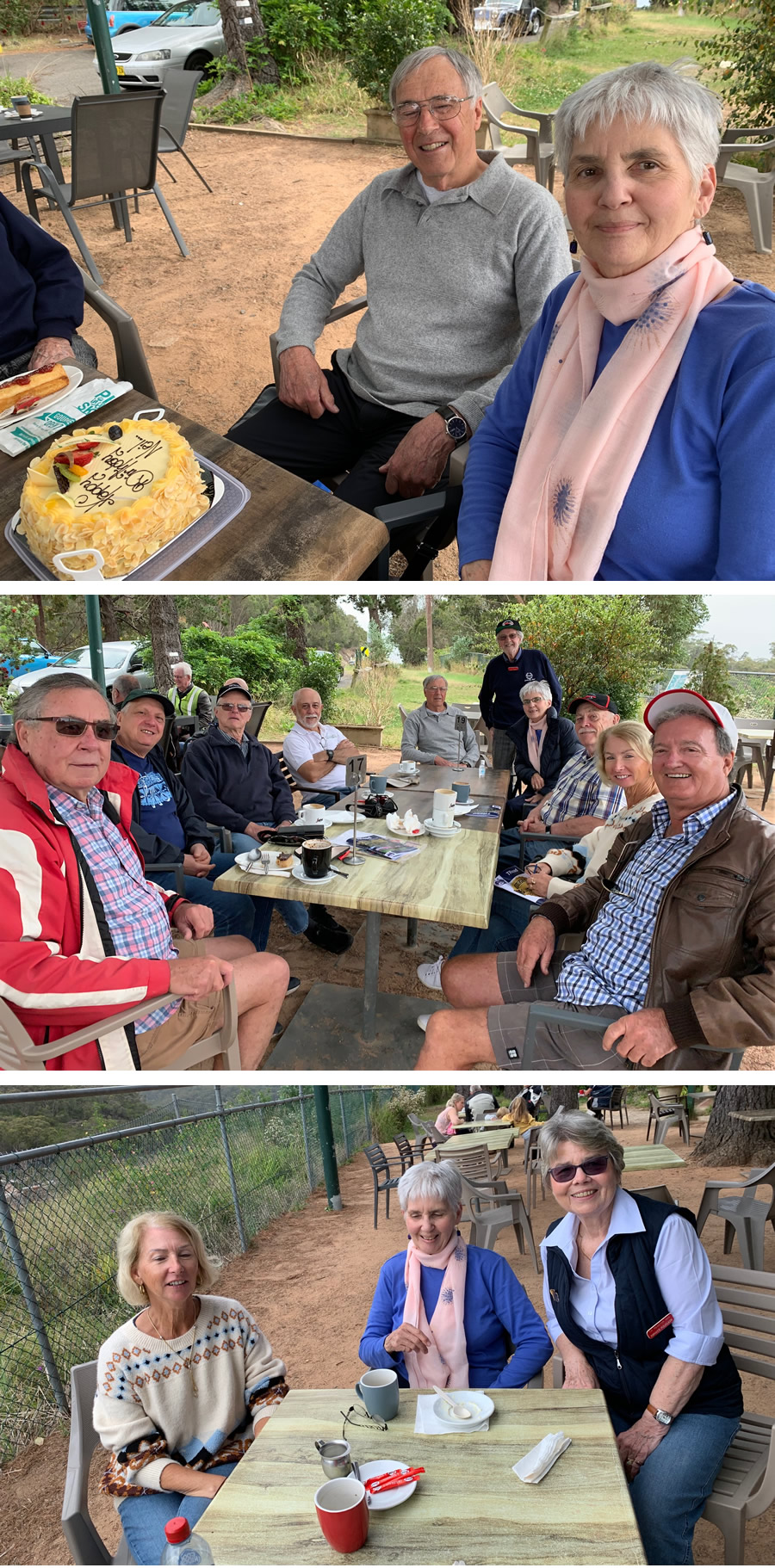 Bill Newling arrived again, too late for the photo! But not too late for Neil Tribe's Birthday cake which Cathy supplied! Regards, Renate Happy Birthday Neil!