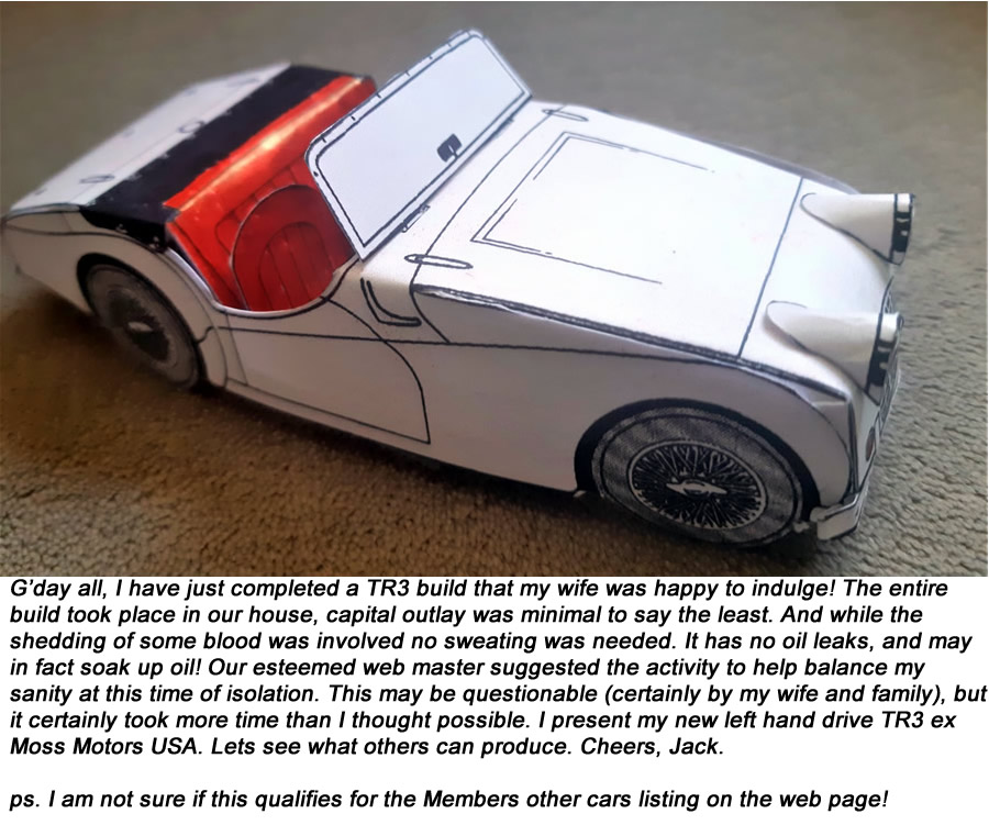 ADDENDUM: Ross was very involved with the first Register Concours held in Victoria. The 1983 Concours was conducted at Lilydale, and due to heavy rain Ross was responsible for organizing the Chirnside Shopping Centre undercover car park for our display of sidescreen TRs. See the 1983 Concours