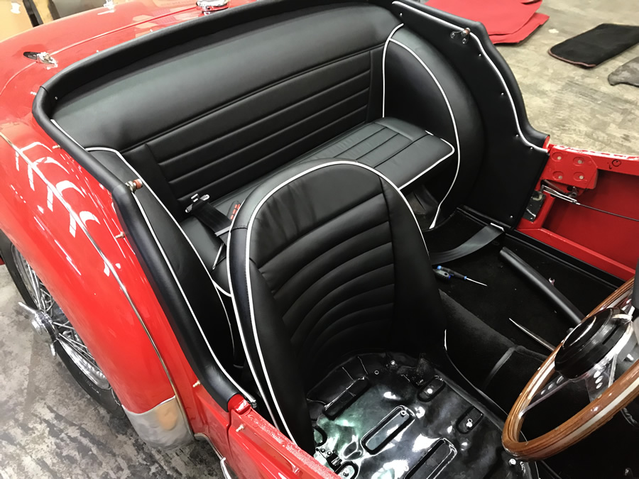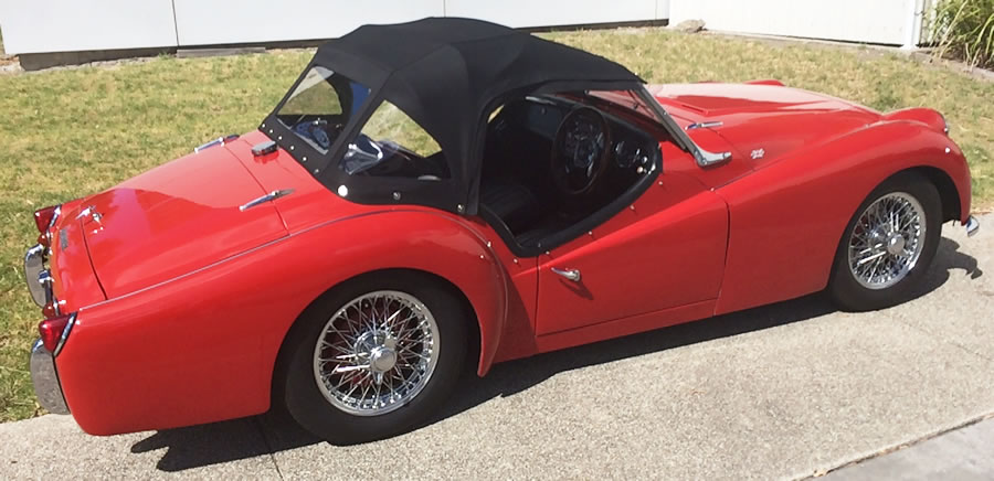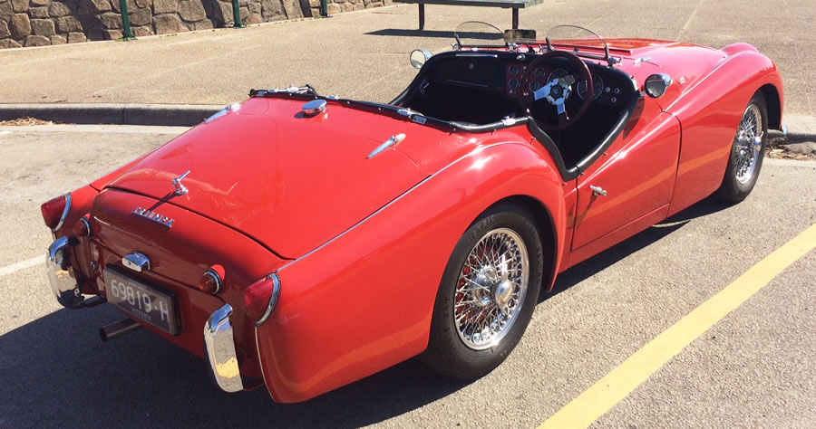 This was done by a company who specialises in classic car restoration and I must say, they did an amazing job. It did however cost much more than we thought, so it took a while for us to want to take another big step! You can see the paint job in the second photo and before all the fittings were reinstalled. At the same time, we completely stripped the interior and replaced all the vinyl with leather. We also replaced the carpets, sorted the dash which had been molested a bit. A new wiring loom was also installed to replace the “rat’s nest” under the dash. We were also mindful of having a reliable car, so the old wiring just had to go. In this condition, we took the car to the Tasmanian Concours and had a few electrical issues unrelated to the loom. It turned out to be a faulty condenser in the main! Just prior to the Adelaide Concours, we had to replace the radiator as the old one started to leak. It was a rush getting the new one out of the UK but we made it. Not a simple switch out job!! In March 2019, we removed the engine, stripped the paint from the engine bay and repainted. At the same time, we installed a reconditioned block from a 1960 TR3a to replace the existing block. (It looked to be from a TR2 and had nothing wrong with it). The High Port head was reconditioned and mated with the block. We are lucky to have a friend who is a mechanic and he lets me work in his workshop under supervision!! Most of the time, I don’t need help but there are instances where experience counts. The “new” engine fired up easily, starts first time and runs very smoothly. The 5th photo shows the car in its current state at the Ballarat Concours. There is more to go but our main focus is now enjoying the driving experience and friendships with other Triumph owners. |