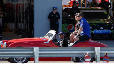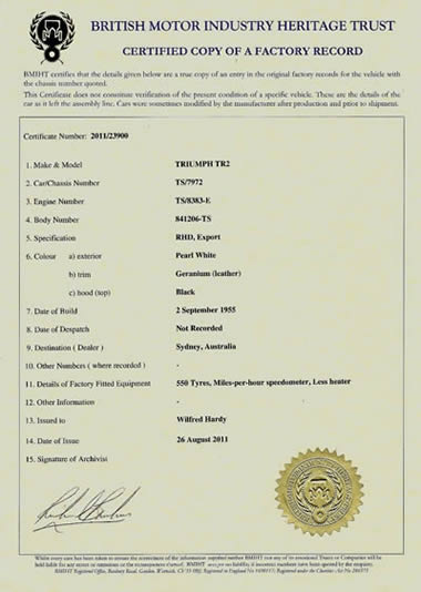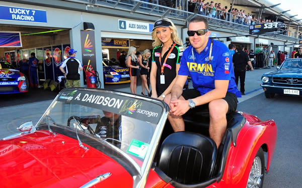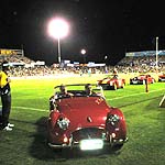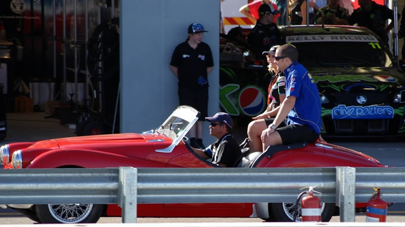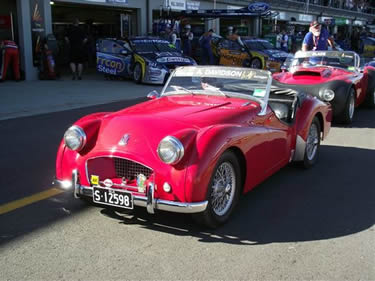 | TR driven by Wilf's son Malcolm at the V8 Supercars Sucrogen 400 in Townsville July 2011, taking part in the Drivers Parade - his passengers are V8 driver Alex Davison (spelt wrongly on the windscreen sticker) and showgirl. |
