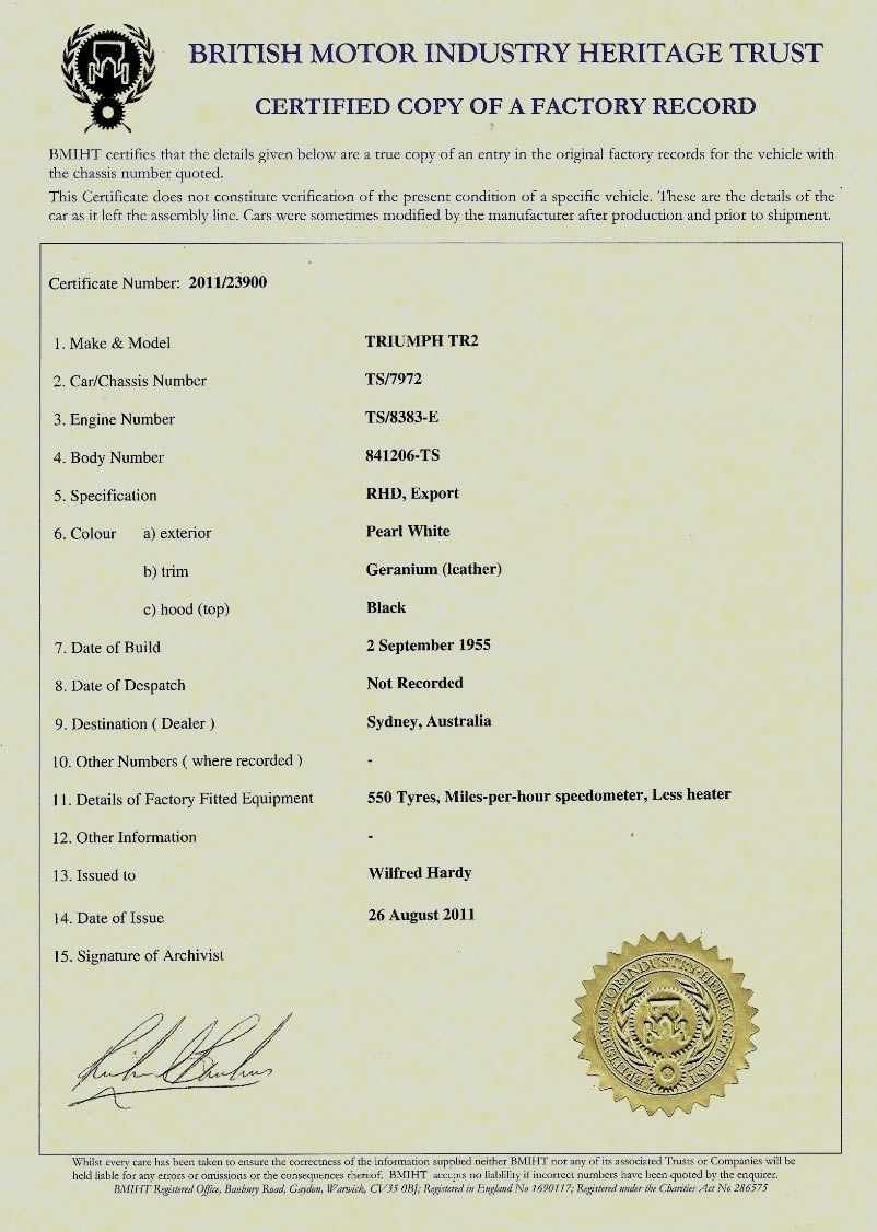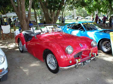 "I recently filled in a few days (or rather weeks) getting the old hardtop lined, painted and perpex window polished (14 days hard labour). I did this because I was fed up being cooked in the summer sun up here in the North when taking theTR 2 for a spin at this time of year. I must say it's now absolutely glorious to drive in the heat. I think the insulated head lining I chose to fit has helped heaps, plus absorbed most of the gear whine, drumming etc. to make the car feel like a darned sedan! I've now also taken on the job of editor for our local club (Marque Sports Car Register N.Q.) newsletter and was pleasantly surprised at our Christmas party/trophy presentation to get the trophy for Club Car of 2006; Triumph TR 2! We are starting to catch up with the South up here now too with regard to fuels as 98 RON is now available. The old TR2 has been absolutely transformed running on these fuels! I guess the release of these fuels is considered economic now our population has exploded, mainly due to the mining boom (plus the fact residents have almost unlimited water)". Wilf Hardy. |