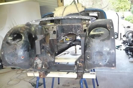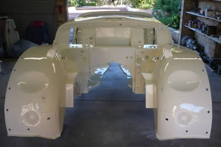 "After many other repairs on every part of the vehicle I finally painted the car with De Beer two pack New White which I think looks pretty good " |
