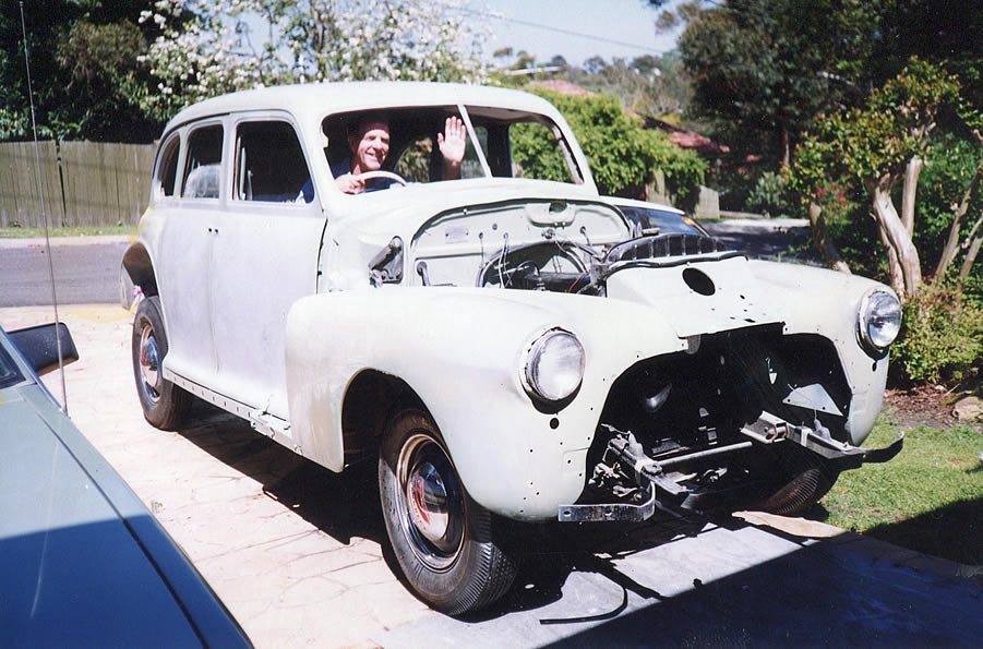 The 1938 Roadster had been purchased in 1998 on a whim and lived in the garden. It was a rare car that had lived in a creek for years. All that was salvaged was the tub, boot lid, doors and hood irons. The rest came from a variety of sedans, coupes and utes. Long story. The engine was a spare for my 1948. It was registered in 2012. Since then it has covered some 5000 miles. It is a comfortable and strong car though crossply tyres and cart springs limit it to about 60 mph.