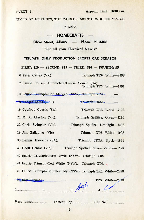 If you have any more photos or programmes of any Australian motor sporting events featuring TRs please contact the Webmaster.