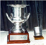 The item is the Perpetual Trophy for the outright winner of the Concours. This imposing trophy was donated to the Register by very long time South Australian member Laurie Cousin, who was running a very fast tr3A and a tr restoration business at the time. He was also instrumental in providing parts for Register members in those early days when the Register didn't have anything like the stocks of new and used parts that we now have. Laurie brought the trophy to Sydney , helped judge the Concours and made the appropriate presentation.
