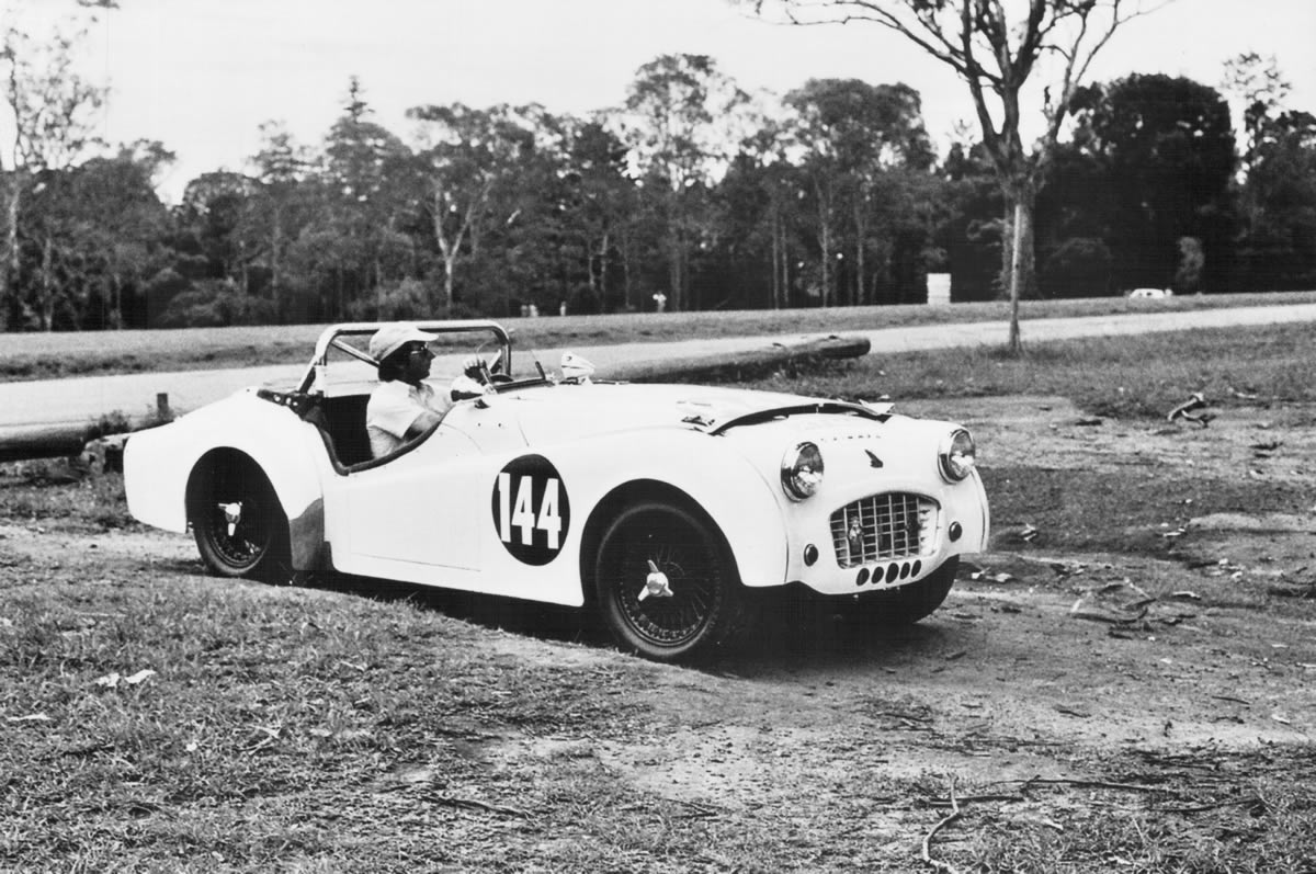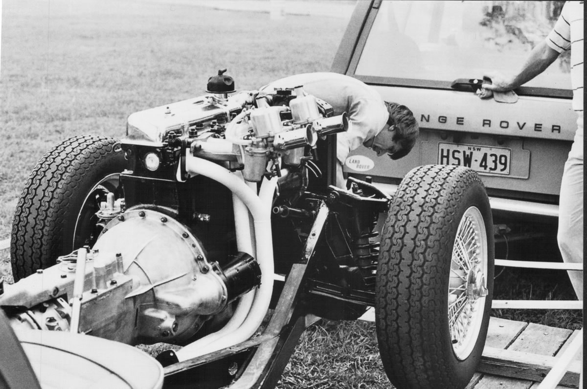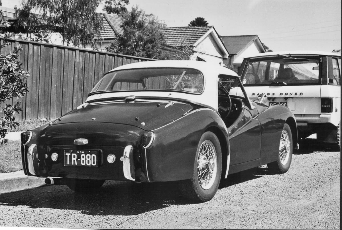 The item is the Perpetual Trophy for the outright winner of the Concours. This imposing trophy was donated to the Register by very long time South Australian member Laurie Cousin, who was running a very fast TR3A and a TR restoration business at the time. He was also instrumental in providing parts for Register members in those early days when the Register didn't have anything like the stocks of new and used parts that we now have. Laurie brought the trophy to Sydney , helped judge the Concours and made the appropriate presentation.