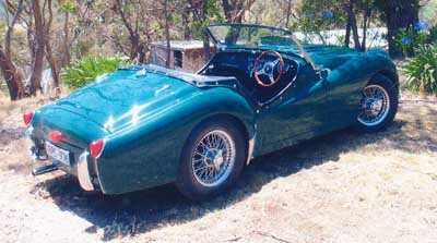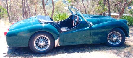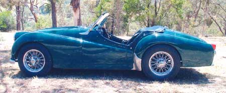 Drummond (both now deceased). Roy Hartles purchased the car in pieces from Mal and retstored it. The car has a disk brake front end, TR4 O/d gearbox and a TR3A rear end. Roy sold the car to Mr Steven Hunt, VIC in May 2002. |