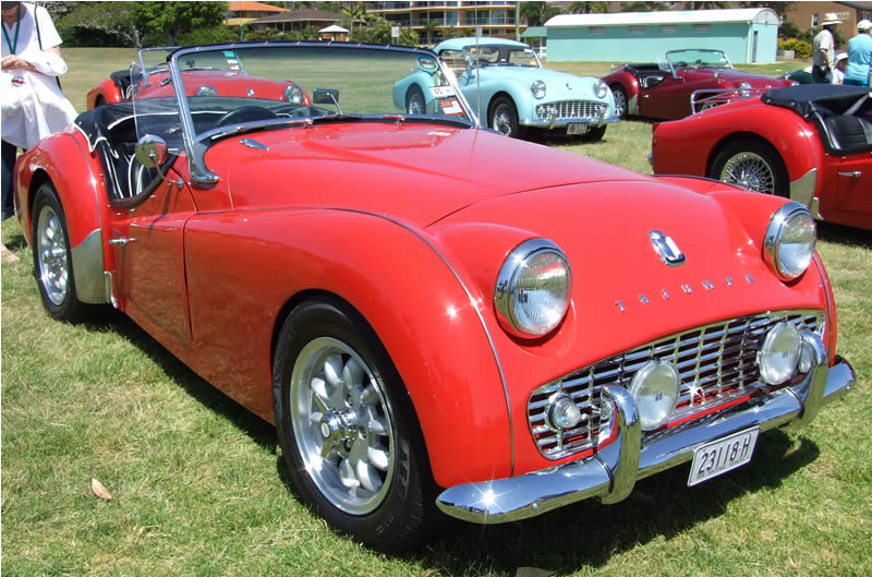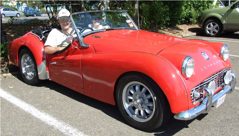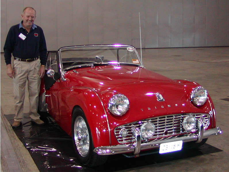 The photo above shows the TR at the Port Macquarie Concours in 2007. Kevin bought the car from Des Wilkinson SA, in May 03. It had been retired about 2000 with a broken crankshaft. The car was partly dismantled - motor in bits, gearbox out, diff out. It had a very good body, new front end, brakes, radiator (with new core), reasonable chrome wire wheels and the rest of the chrome has been re-done. By 2004 the car was completely restored, and has a "J" type overdrive, power brakes and rack & pinion steering. |
