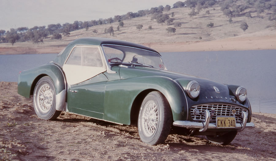 This is Middo's First TR. He describes it thus: "I purchased the car from Geoghan's on Parramatta Road. I can't remember their full name but they had quite a large yard specialising in performance cars and were there for quite a few years. I eventually traded it in on the Lancia Aurellia GT6 at a yard on the Pacific Highway at Pymble. After an altercation with a guidepost on Cambewarra Mtn. we gave her an all over BRG paint job and she came up quite nicely. She was then purchased by a young bloke who later tracked me down looking for the original steering wheel because he didnt like the reflection he was getting on the windscreen from the back of my you beaut wood rim wheel. I also remember him saying that he had fitted an overdrive from a Vanguard. That would have been somewhere around 1969. The photo below shows the car at Wyangala Dam and the year is around 1964/65. We have no detail on this car - if anybody has a recollection triggered by this photo - please contact Rick rick@tr-register.com.au |