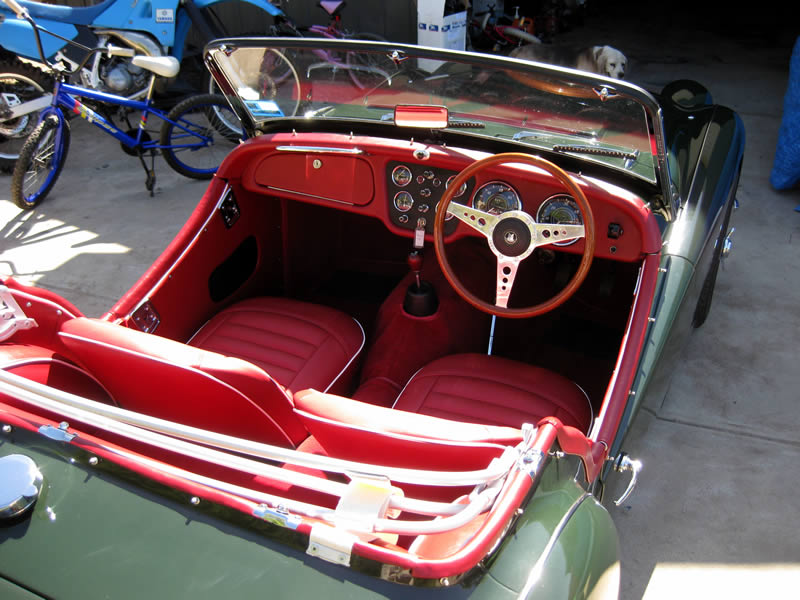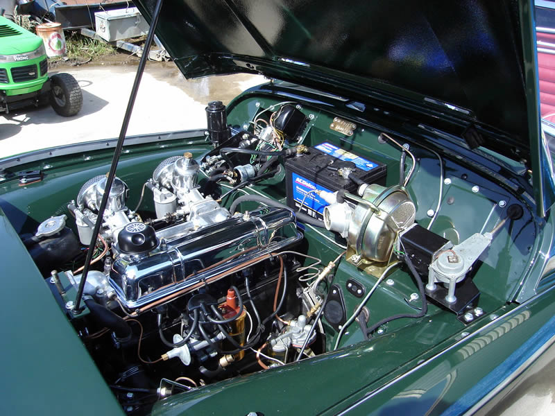 seen in the accompanying photos. Geoff did an excellent job reconditioning all the mechanical works including the engine, gearbox and suspension. Based on his very sound advice a high torque starter motor, electric radiator fan, extractors, power brakes, upgraded shock absorbers, front sway bar, 72 spoke wheels and Mota-Lita steering wheel were fitted for improved safety, performance and roadholding. The interior was completely refurbished and reupholstered with Geoff then reassembling the whole car to its current glory for which I will be forever grateful.