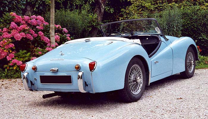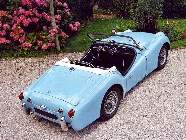 Frederic says: I'm very proud to send you those pictures of my father's TR3A. We live in France but my father is an old "Australian". He worked 8 years for a french petrol company and used to stay at Brisbane. He travelled all around the Australia and had some fantastic experiences. He always told me about those very kind "Australians". My father has had this 1959 TR3a for 3 years. It's an American car which came back to Belgium and wasa ultimately bought by my father. He spent much time to restore it to "Bill pigott original triumph TR" condition. We really enjoy travelling in Europe with this fantastic car. Of course the paint is powder blue with dark blue interior. Our others cars are Triumph spitfires. The first one is a Mark 3 with a Royal blue paint. The second is a Mark 4 with a French blue paint. Do you know which car we are looking for today? A Wedgwood blue triumph TR4 of course. Click to View |