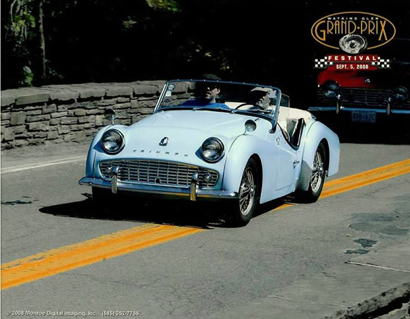 Photo was taken on the stone bridge, part of the old road course, Watkins Glen, NY during the Vintage Grand Prix weekend, 2008. Triumph was the featured marque.