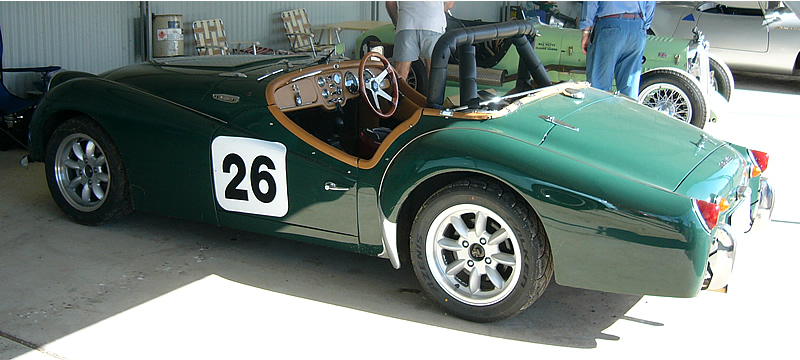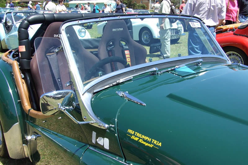 "The TR3A was restored by the late Boyce Beeton. I purchased it from John Pike who had acquired it from Boyce's widow. I have had a lot of work done to it including 87mm big bore pistons, lightened flywheel, balanced engine, button clutch fitted, TR4 head was ported and fitted by Racetech Cylinder heads in Sydney who also used their development software to provide a high lift cam. It now runs 10.9:1 compression ratio and has had copper shim head gasket fitted. It also has a free flow manifold fitted with a 2" straight through system, hi-torque starter motor and the suspension and steering has been upgraded with modified shocks, anti roll bar and TR4 upper control arms with 3 degree caster trunnions." The photo above was taken at the Port Macquarie Concours 2007 |