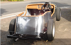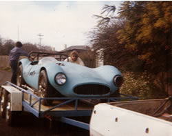 "the early shot on trailer is from 1979 when I purchased it. The racing shot is from Symmons Plains when I competed about 1984. The other shots were taken just before it moved to Longford in 1988. I have included 2 progress photos of the Sullivan TR3 Special which is now drivable." |