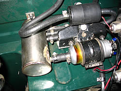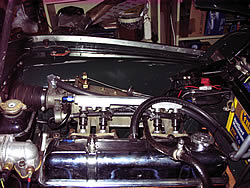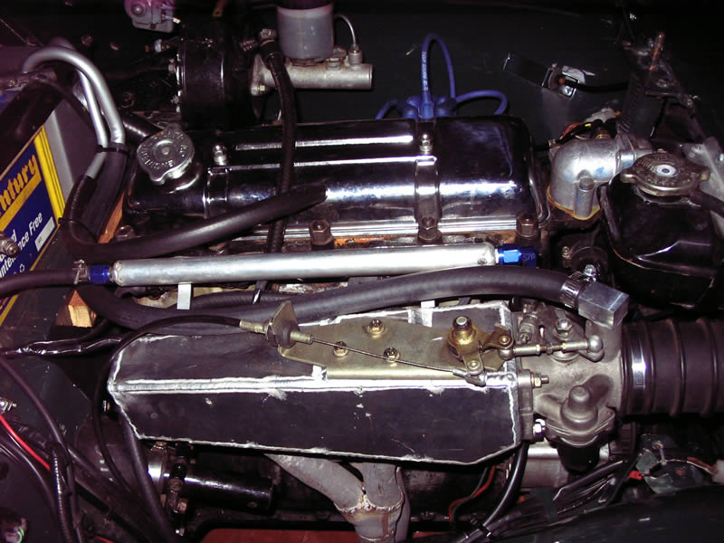 Before these changes are carried out, a critical decision needs to be made. What kind of injection system am I going to use. By that I mean, how many injectors, how many throttle bodies (TB) and how will the injectors be fired. This will affect the air handling system (manifolds etc) and throttle bodies. The throttle body is basically the butterfly, just like a carburettor. It is your connection to the engine. You can have one TB as is the case with most cars, two as is the case with the TR Carbies or, one per intake port as on EFI equipped motor bikes and outboard engines or the old Lucas system fitted to the TR6. There are then two ways to set up the injectors, one per intake port like most cars today (multi port) or fit them to the throttle body(s) and have one or two injectors for the whole engine like the early EFI Falcons and a lot of high performance V8s and drag cars. Still another choice is the method of firing the injectors, batch, bank or sequential. With batch injection, all the injectors fire at once but not timed to any particular cylinder. With bank injection, half the injector's fire at once but again not timed to any particular cylinder. Sequential injection is where each injector fires at a specific point in its cylinders cycle. With throttle body injection, they are usually batch or bank fired as they feed more than one, normally all, cylinders. Port injection is normally bank or sequential fired. Sequential injection is much more complex for the TR as you need a cam position sensor. Also the complexities would far outweigh the advantages. I imagined that with sequential injection the fuel would be directed straight into the open intake port but in fact at higher RPM and load, there is not time. The intake valve is only open for about 30% of the cycle and above about 2500RPM and 30% max HP the fuel required can not be injected fast enough. This means that fuel is injected onto closed valves, just like bank injection. OEMs use sequential injection to lower emissions at lower RPM. If you're good enough you can tune each cylinder individually and some high end cars do just that. So, which one for the TR? As the TR head has four intake ports, port injection is the natural choice. On an MGB you would have trouble as they have siamese ports. Next is the throttle body. The standard TR has two (SUs) and we could simply gut the carbies and use them on a standard manifold. The throttle set up and air cleaners can be retained. Also this would retain the "period" look of twin SUs. Another option is to fabricate a plenum chamber to connect the two flanges of a standard manifold and use one throttle body as do most cars today. You can find suitable ones at the wreckers. I got a 1987 Holden Camira one with all fittings for $45.00. This can then be fed by an air duct from the cool side of the radiator. A third option is to use a set of motor cycle throttle bodies. These come complete with injectors, fuel rails, fuel pressure regulators, and throttle position switch. The big bikes can produce over the required HP and as such the injectors would be suitable. A simple manifold would need to be fabricated to match them to the TR head. Air would be fed to them by a fabricated plenum chamber and air cleaner much the same as a single throttle body option. At this point I am favouring the motor cycle TB option as it overcomes the problem of fitting injectors to a standard manifold together with the fuel rails. The ease of directing cool air to them is also an advantage. Utilising the SUs as throttle bodies also has a lot of appeal. Decisions, decisions. I have ordered my MS2 kit as well as a simulator kit to test the ECU as I build it. I will update the progress of this project in the next Sidescreen. EFI Conversion Part 2As you may recall, I was deciding on the manifold/throttle body set up for my conversion. I was favouring motor cycle units over the original TR4A manifold and gutted SU carburettors or new fabricated manifold. I inspected a number of motor cycle units and decided that there would be some real problems with spacing and a new air manifold would still need to be fabricated to connect the four throttle bodies to an air cleaner. In the end I decided on a new manifold. Once that decision was made I was able to get down to some serious work. The Megasquirt and Stimulator kits arrived just four days after ordering out of the USA . It took me about five days of soldering at night, on the kitchen table much to the consternation of my wife, to complete the kits. My first problem occurred when I tried to down load the firm ware to the MS (Megasquirt) unit. This is the base software the unit uses, like the operating system on you computer. I am a bit of a novice when it comes to software so I called on our Editor, Bob Slender, for some help. After a bit of fiddling at his place we were up and running and I was able to test the MS assembly. This checked out OK so I put it aside and went to the garage for the serious stuff. After many hours at the local Pick and Pay wrecker, I settled on the 1986 Camira 1.8ltr engine as the donor car for most of the EFI parts I needed. This was chosen as it has all the components I needed with a comparable engine output. The parts I am using are the injectors, throttle body complete with throttle position sensor and idle control, air intake temperature sensor, coolant temp sensor, fuel pressure regulator, throttle operating mechanism and cable, air intake hose, and the engine wiring loom and relay/fuse block. The wiring loom gave me all the colour coded wire as well as all the weather proof connectors I needed to connect the various sensors and injectors to the ECU. This all cost me $135.00. The new inlet manifold was the next on the list and to complete this I purchased some 12mm and 6mm plate, some 40mm x 3mm tube and 20mm rod from my local aluminium supplier. I made up the two manifold mounting plates from an old damaged TR3A manifold. I had intended t
