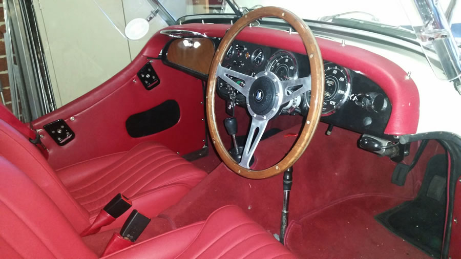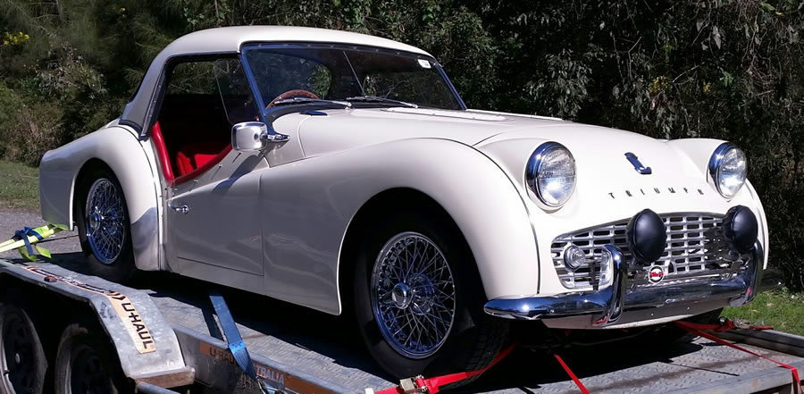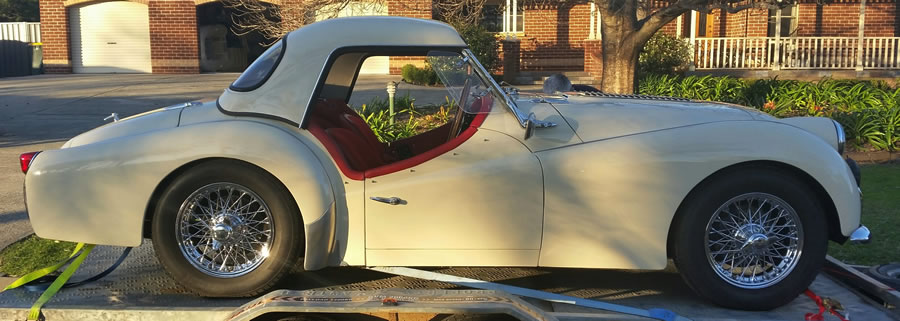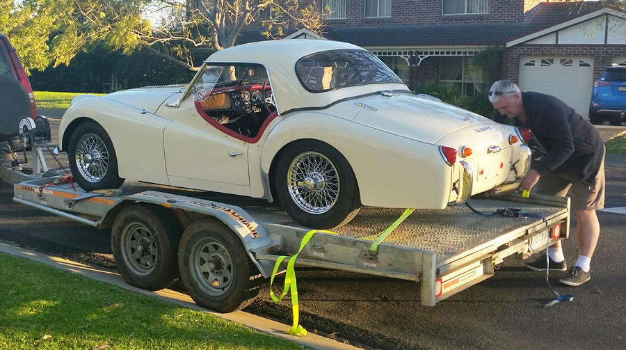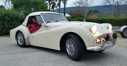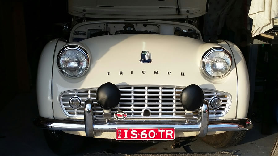 Ian says: "I purchased the TR from Graeme Kane. Graeme organised the fitting of new chrome spoke rims and a factory metal hardtop. I have done a lot of work to get it right and drivable. I have removed the rear horizontal shocks and radius rods as well as the panhard rod. The car handles much better now with the fitting of new standard shocks. I have adjusted the front suspension to remove the side loading on the drop arms and trunion bearings. So the now car steers better. New upper control arm bushes and a new right top ball joint have been replaced. The capillary temp gauge wasn't working and has now been repaired by Howards instruments and refitted. The resultant blown head gasket has been replaced, the head has been crack checked and machined slightly, also valves reseated. A new volvo crossflow radiator fitted with repairs done to the leaking header tank plus a new radiator pressure cap. A new high flow 170°F thermostat and a new water pump also fitted. Also a new vacuum advance unit fitted. I purchased new ADR approved leather seats with removable headrests, and fitted these. Susies seat has a heater fitted. I have purchased and fitted new sidescreens. I have also purchased a second hand heater which I will fit at a later date. I will also move the inertia seat belts to the wheel arch instead on the rear 'seat' area at a later date." |